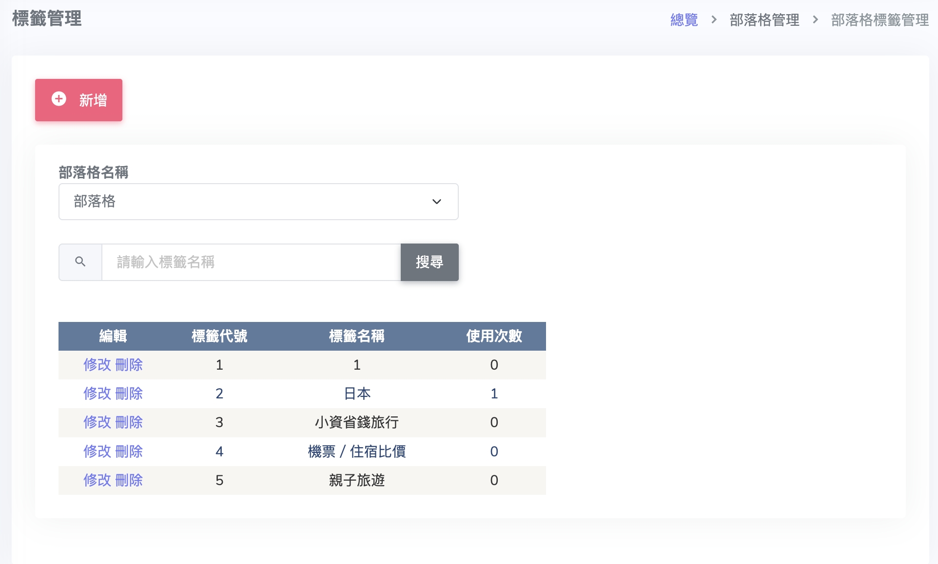 部落格標籤管理