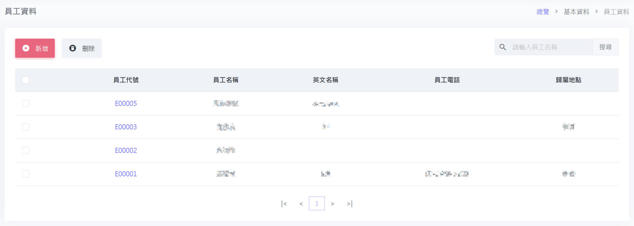 進入員工資料時,將看到所有員工資料清單,如下圖所示